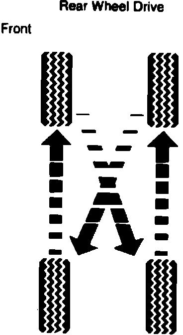 Some rear wheel drive vehicles may exhibit premature tire wear on the front wheel positions. The wear usually starts on the outer tread row and may progress across the full tread. This wear also usually appears as a heel and toe (high and low) wear pattern on individual tread blocks which can eventually lead to tire noise and/or tire roughness.