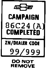 Each vehicle corrected in accordance with the instructions outlined in this Product Campaign Bulletin will require a "Campaign Identification Label". Each label provides a space to include the five (5) digit dealer code of the dealer performing the campaign service. This information may be inserted with a typewriter or ballpoint pen.