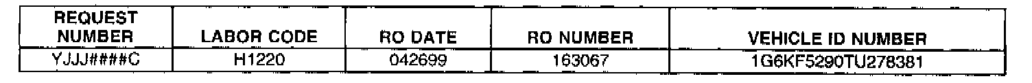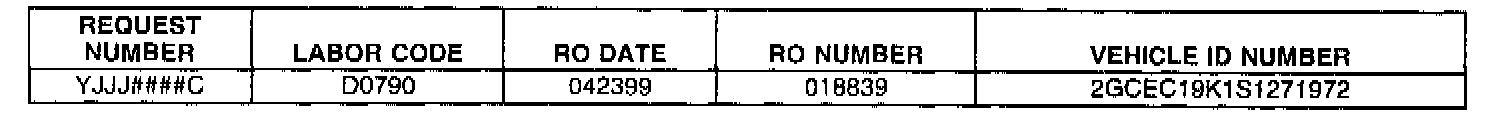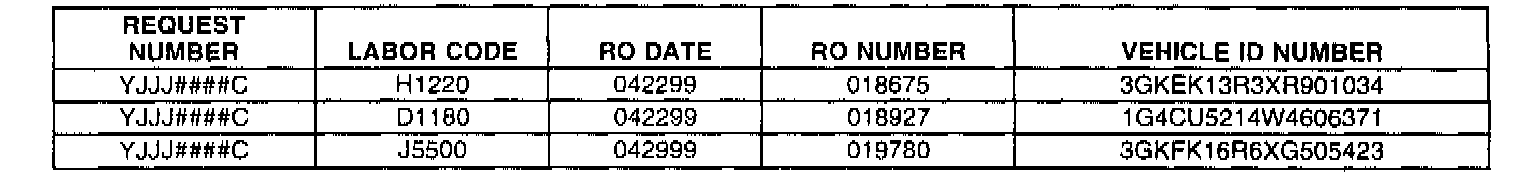 BELOW ARE R.O. ONLY REQUESTS WHICH SHOULD BE RETURNED TO THE REQUESTOR VIA THE POST OFFICE USING THE MAILING LABEL PROVIDED. NO R.O. ONLY REQUESTS SHOULD BE RETURNED TO THE WARRANTY PARTS CENTER.