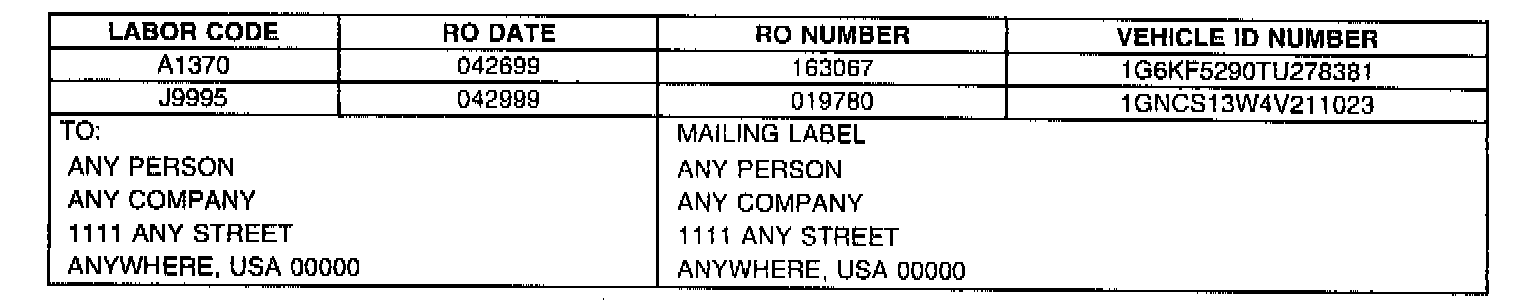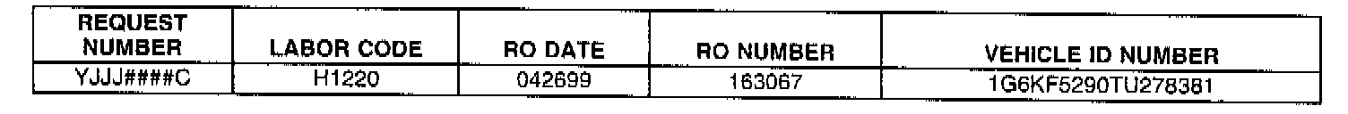 BELOW ARE R.O. ONLY REQUESTS WHICH SHOULD BE RETURNED TO THE REQUESTOR VIA THE POST OFFICE USING THE MAILING LABEL PROVIDED. NO R.O. ONLY REQUESTS SHOULD BE RETURNED TO THE WARRANTY PARTS CENTER.