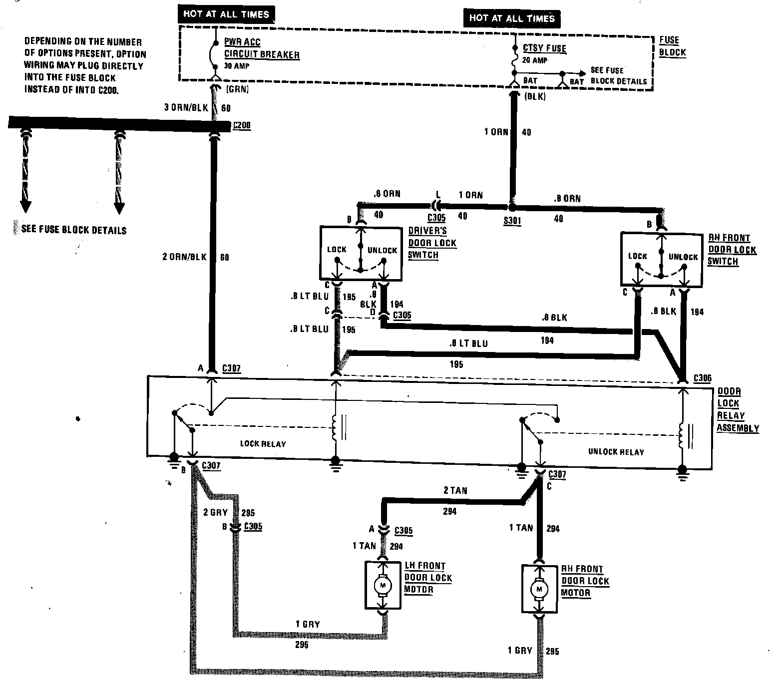 Fig. 77 Power Door Lock Wiring Circuit. 2 Door: