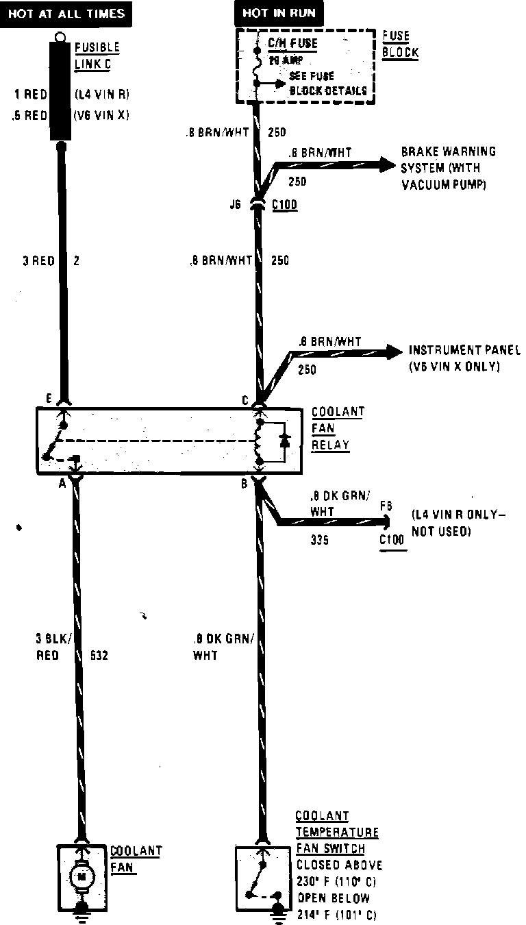 Fig. 33 Coolant Fan Wiring Circuit. Less A/C:
