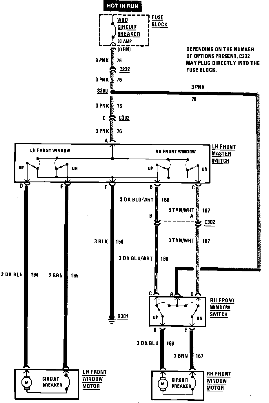 Fig. 81 Power Window Wiring Circuit. 2 Door: