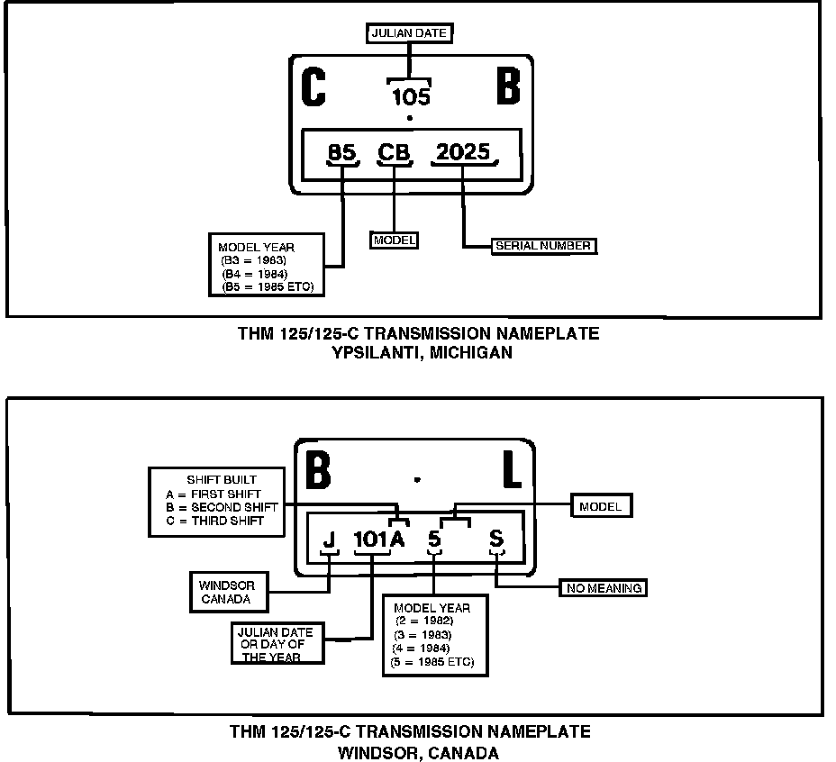 Beginning April 15, 1985 (Julian date 105) for U.S. models, and April 11, 1985 (Julian date 101) for Canadian models (Refer to Figure 3), 125 and 125C transaxles are being produced using a case with the intemediate servo bleed orifice eliminated.