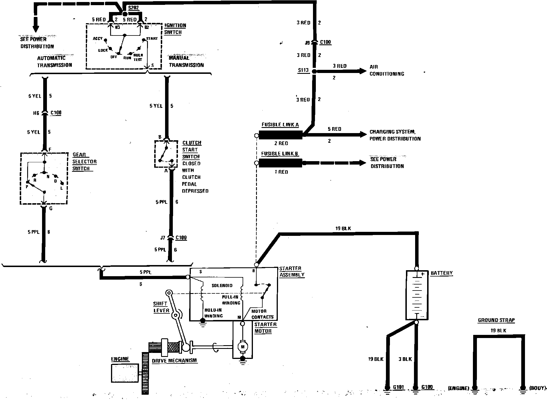 Fig. 90 Starter Wiring Circuit. 6 Cylinder VIN-X: