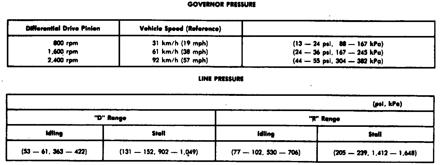 7. If governor pressure is not within specifications, incorrect line pressure, leaking governor pressure circuit or improper governor valve operation is indicated.
