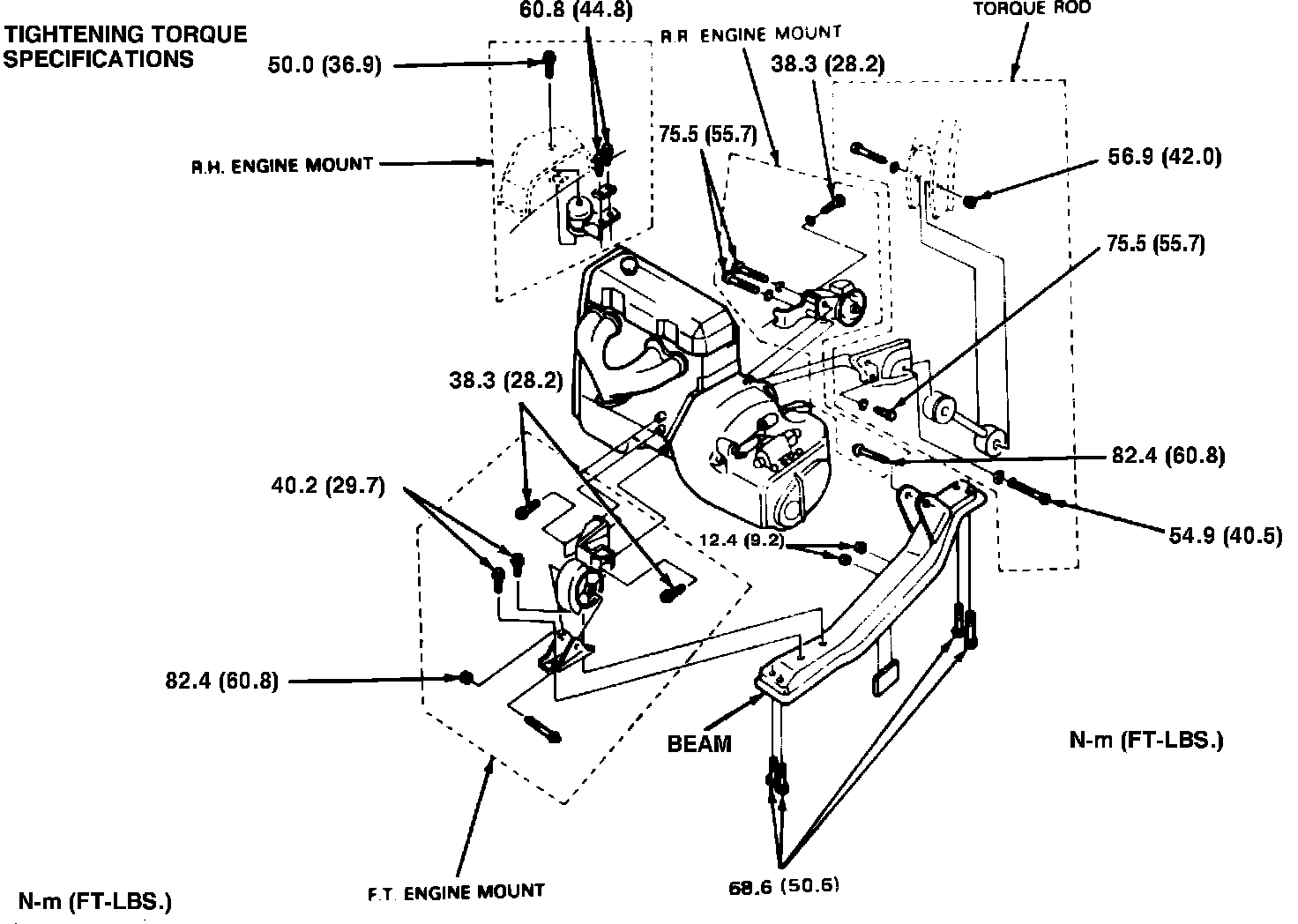 6. Remove through bolts and nuts from front and rear engine mounts.