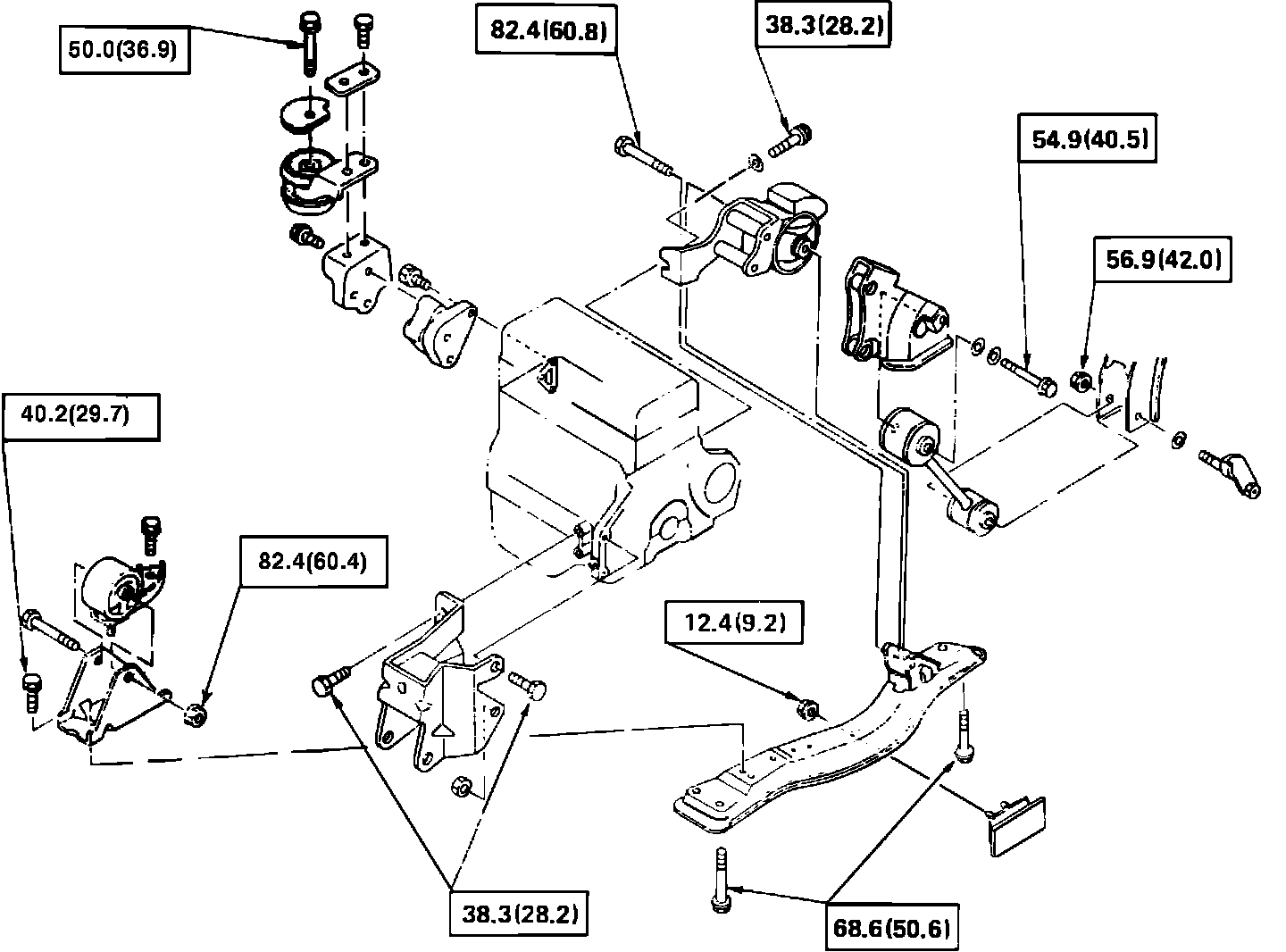 Fig. 1 Engine mount replacement. Exc 1987-88 turbocharged models: