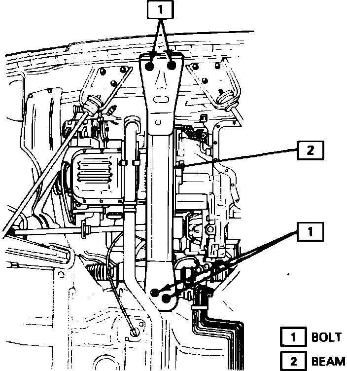 7. Remove 4 beam attaching bolts and the beam, Fig. 3.