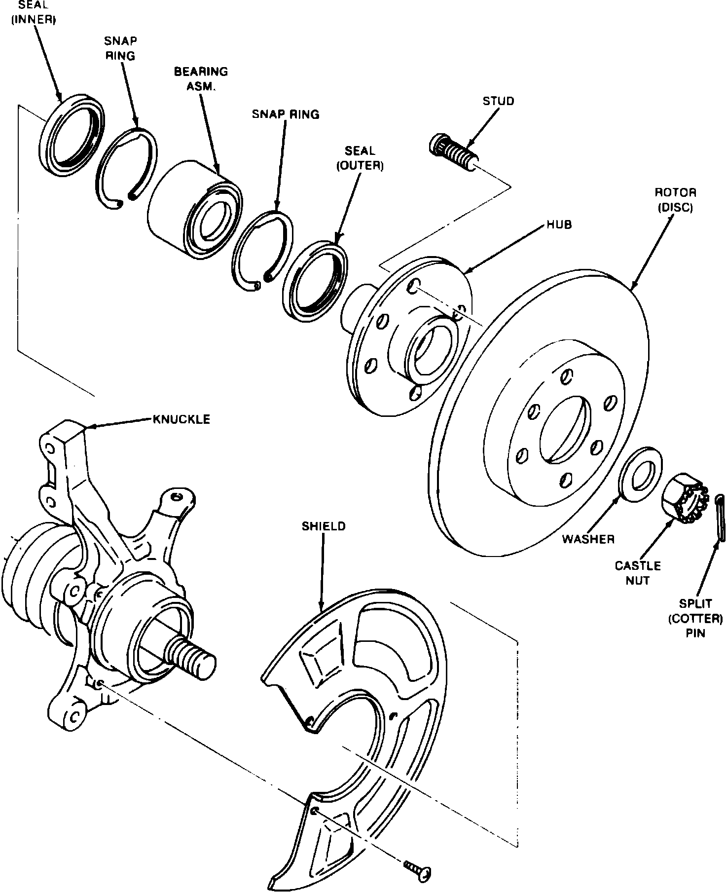 FRONT HUB AND ROTORFig. 9 Exploded view of steering knuckle & hub assembly: