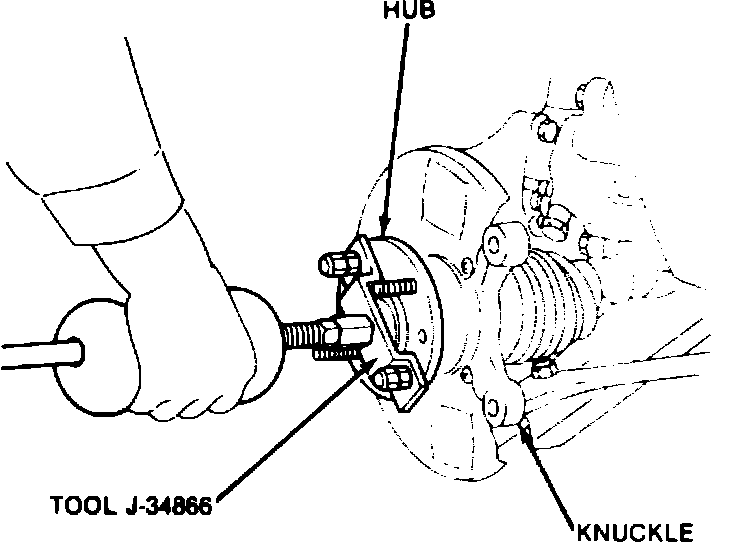 5. Using tools J-34866 and J-2619-01, remove hub, Fig. 10.