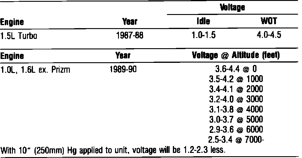 1.6L Prizm DOHC:Manifold air temperature sensor measured between terminals E2 & THA (first and last) of airflow meter.