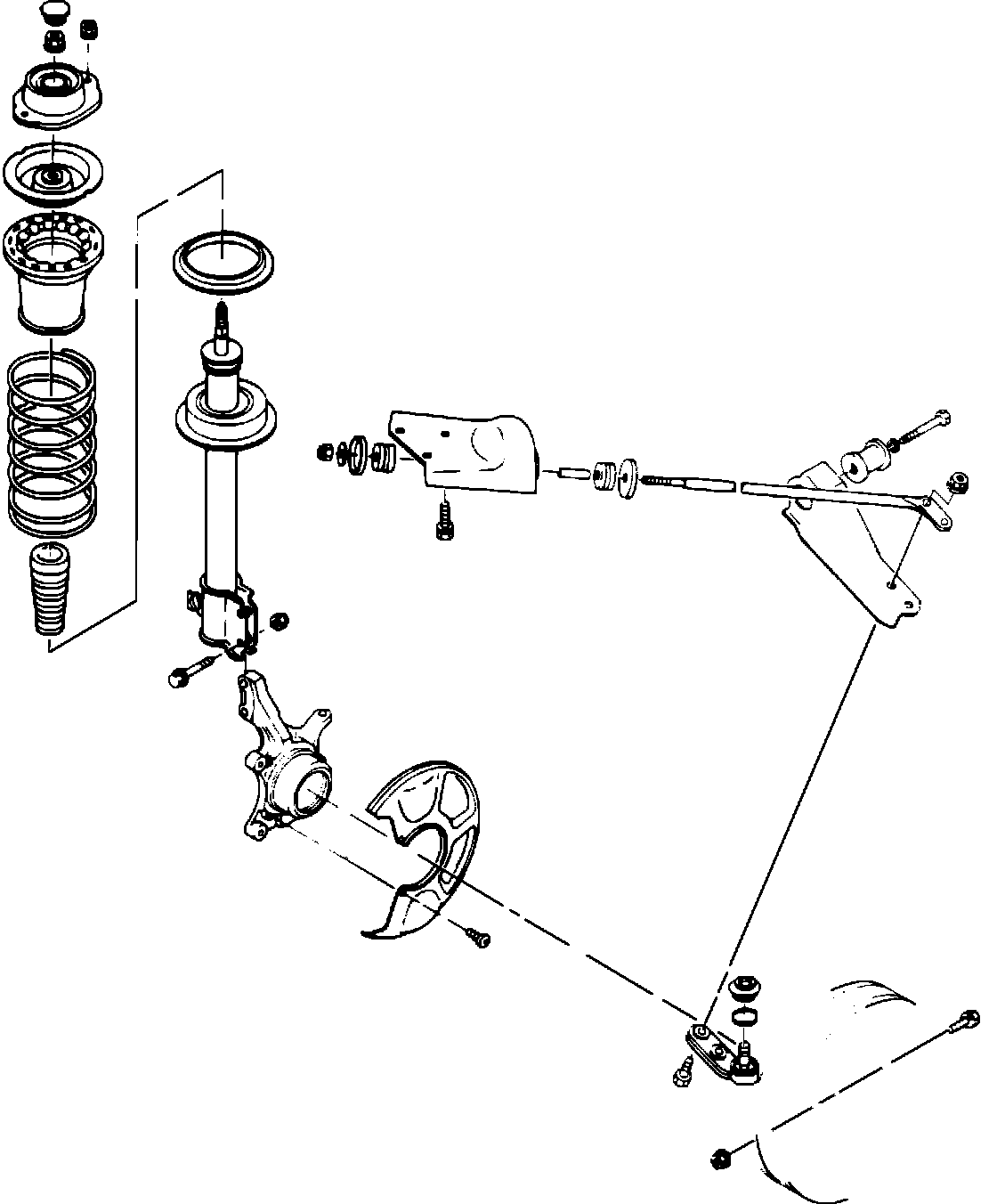 2. Remove lower control arm-to-tension rod attaching nuts and bolts.