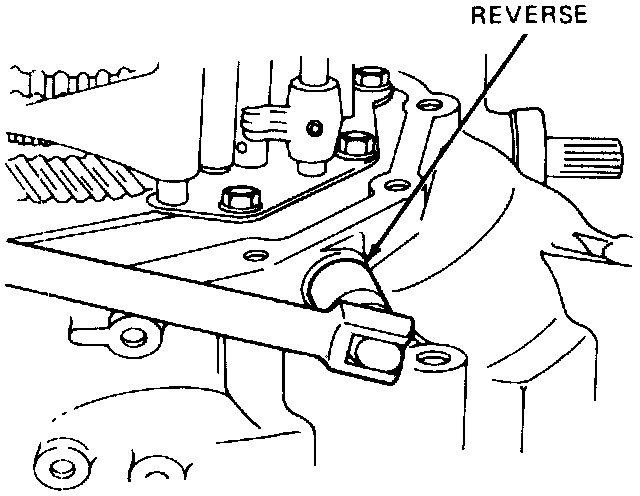 8. Raise 5th gear to align detents and remove 5th and reverse gear shafts simultaneously.