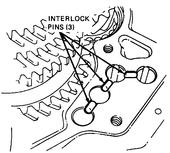 11. Remove reverse shift bracket and three interlock pins.