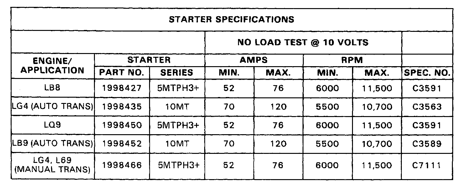 STARTER SPECIFICATIONS