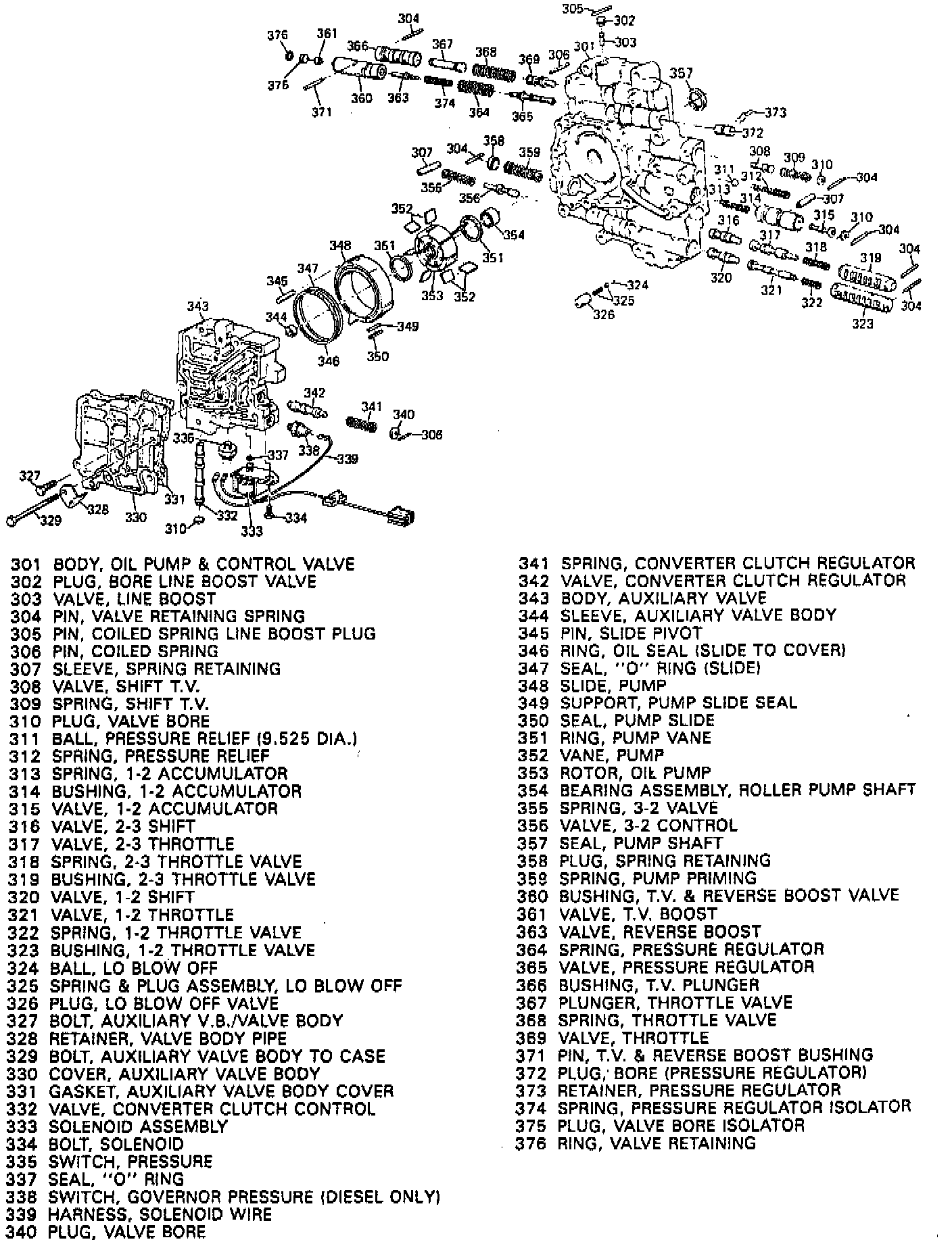 3. Assembly of pump and auxiliary valve body is the reverse of disassembly. When assembled, attach auxiliary valve body to valve body with new gasket, then install cover with retaining bolts. Refer to "Torque Specifications Chart" for torque values.