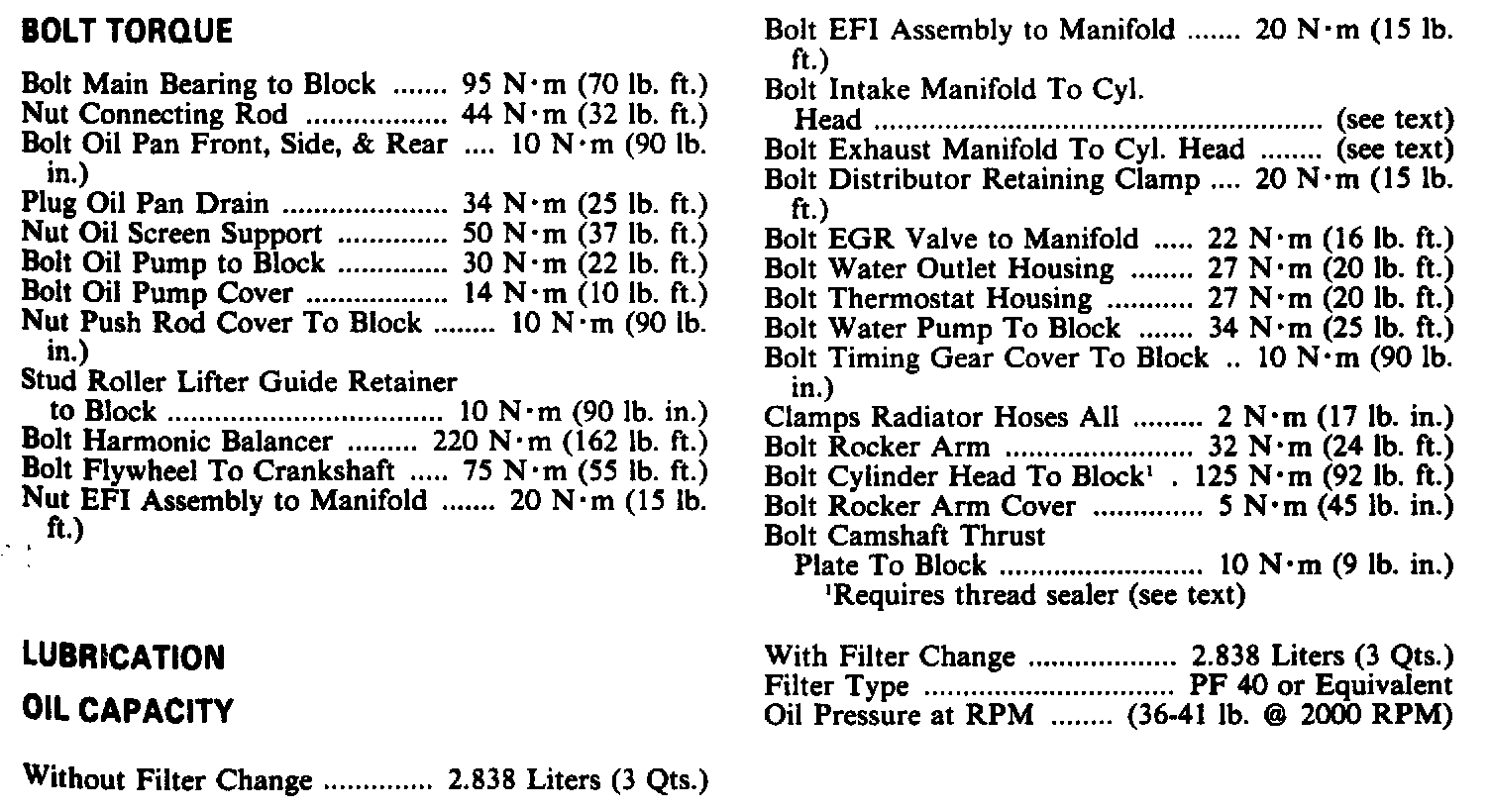 Torque Specifications: