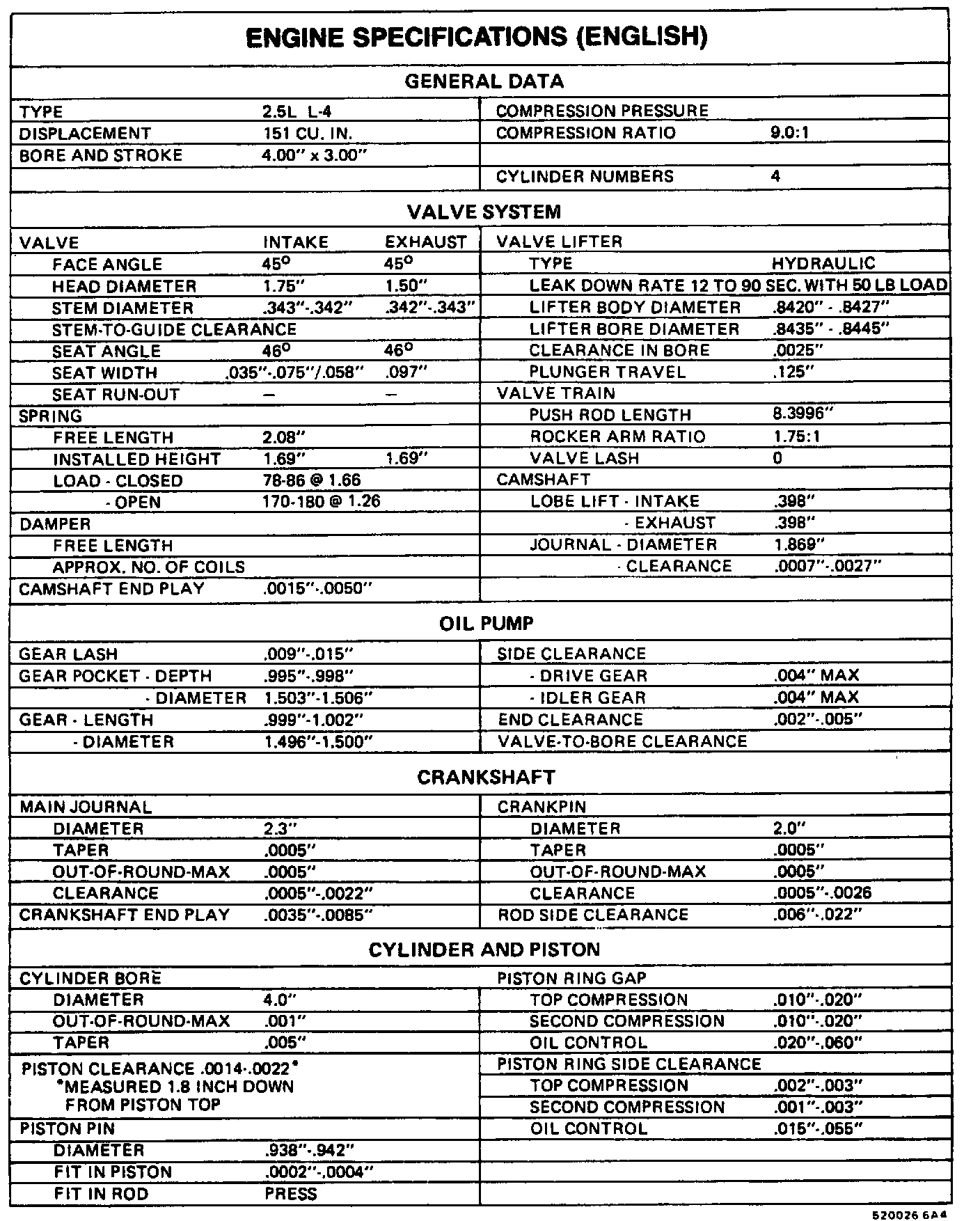 Engine Specifications: