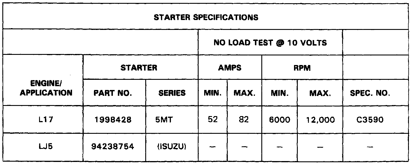 STARTER SPECIFICATIONS