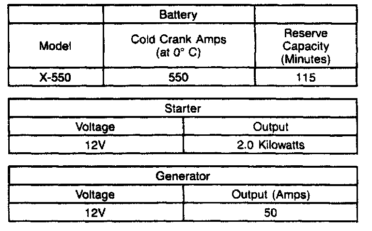 Starting and Charging: Specifications