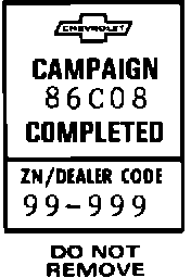 Each vehicle modified in accordance with the instructions outlined in this Product Campaign Bulletin will require a "Campaign Identification Label." Each label provides a space to include the five digit dealer code of the dealer performing the campaign service. This information may be inserted with a typewriter or ballpoint pen.
