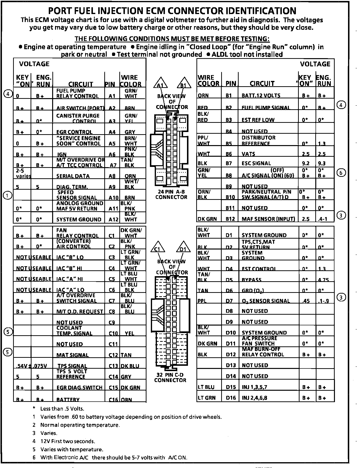 ECM Connector Terminal End View: