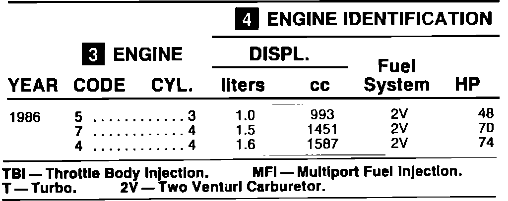 ENGINE IDENTIFICATION: On the line where the engine code appears, read to the right to identify the engine.