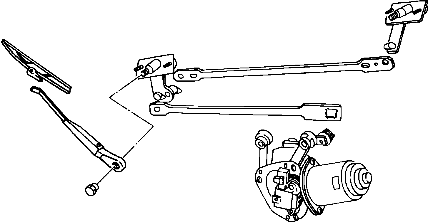 7. Remove wiper motor attaching bolt, then the wiper and link, Fig. 6.