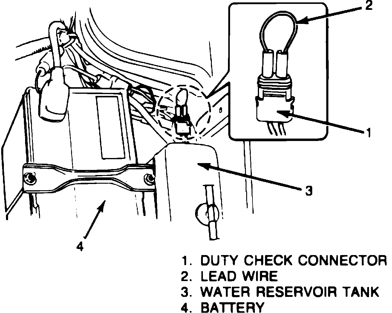 1. Remove duty check connector cap and connect terminals with lead (jumper) wire, Fig. 15.