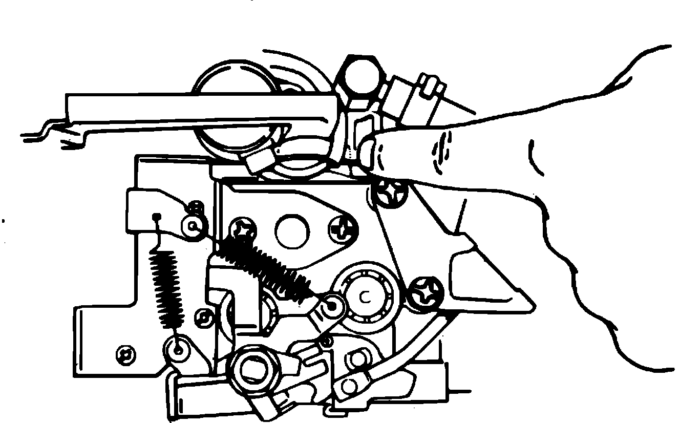 2. Without starting engine, switch ignition on and off repeatedly and feel for mixture control solenoid vibrations, Fig. 16.
