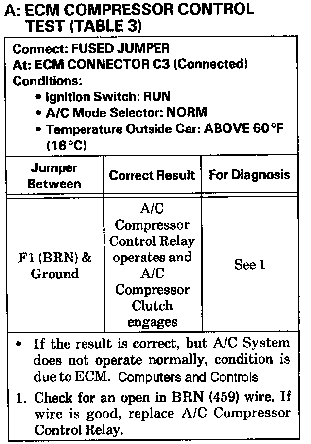 Test A ECM Compressor Control Test Table 3:
