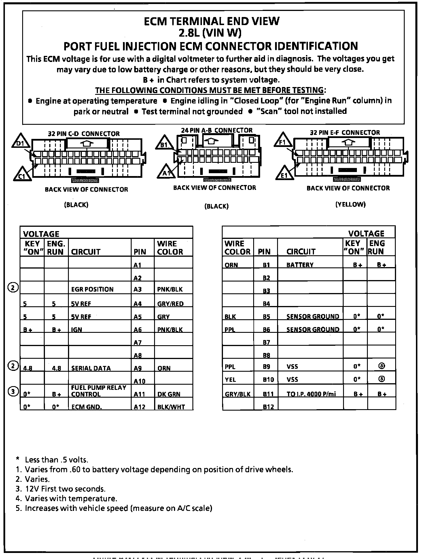 ECM Terminal ID and Voltage Specifications (Part 1 of 2):