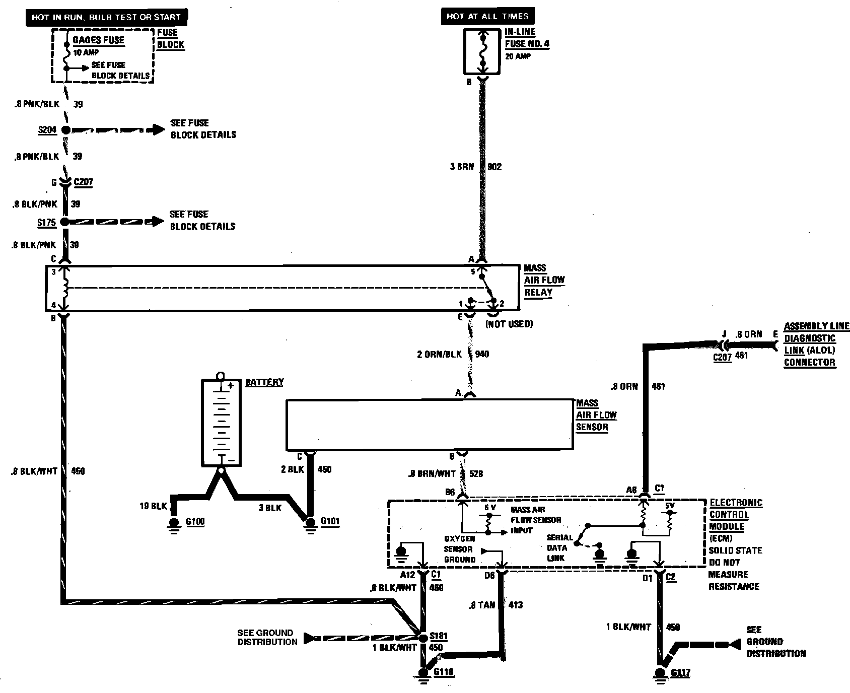 Fuel Injection/Multi-Port Wiring Circuit (Mass Air Flow Control). W/V6-173/2.8L: