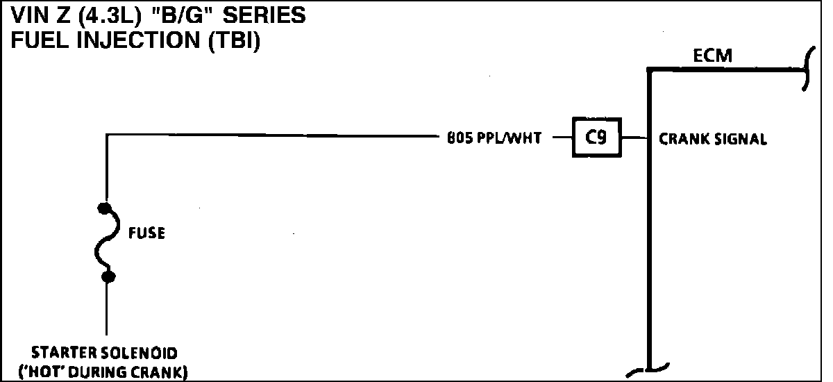 1. Checks for normal (cranking) voltage to terminal "C9" of ECM. Test light should be "ON" during cranking.