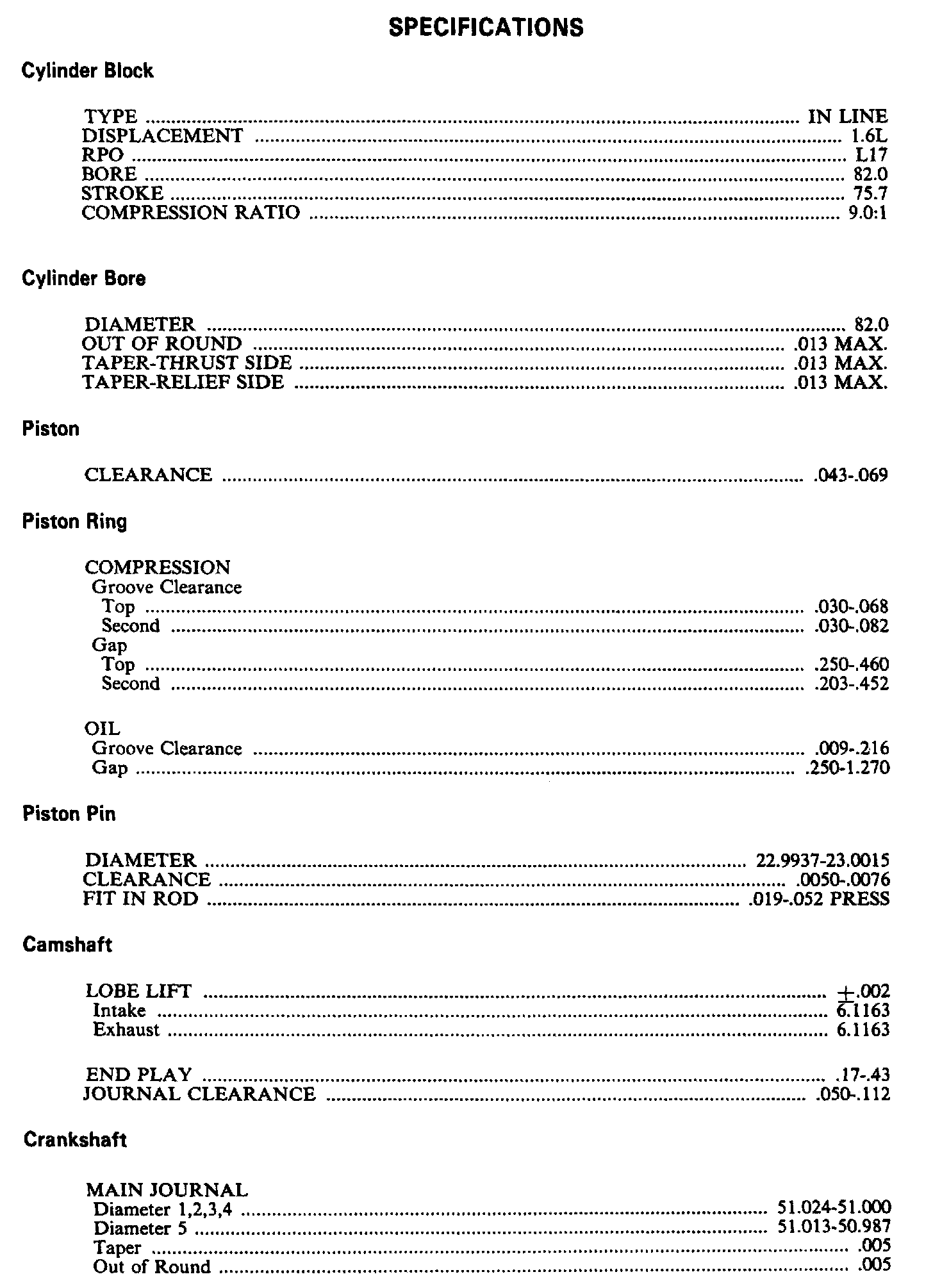 Chevette L4-98 1.6L