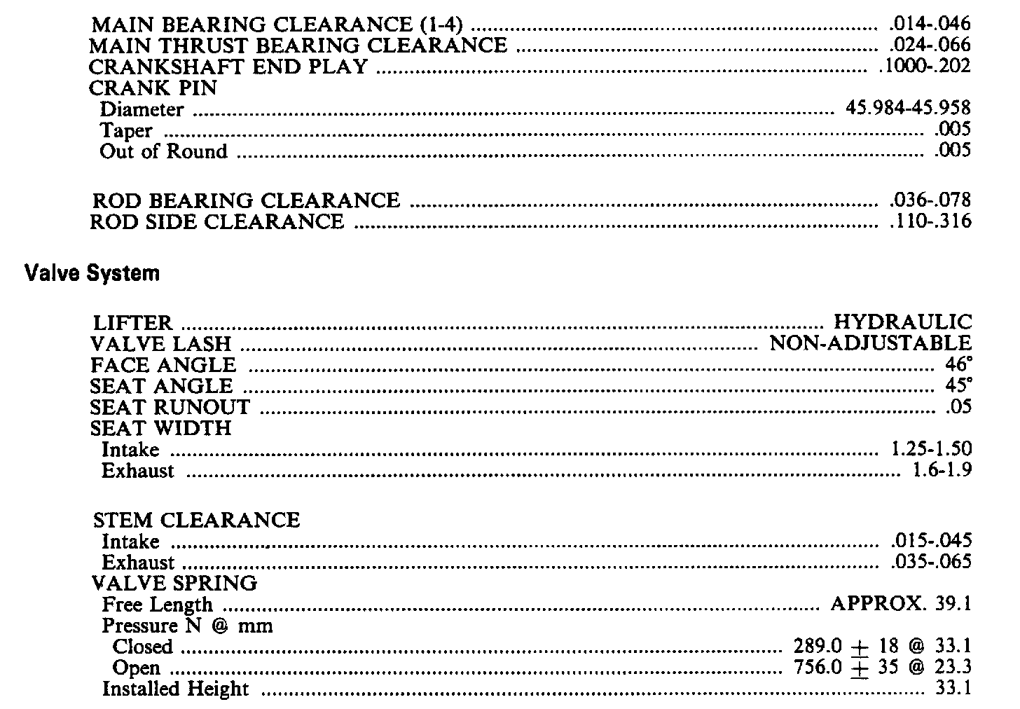 Continued Engine Specifications: