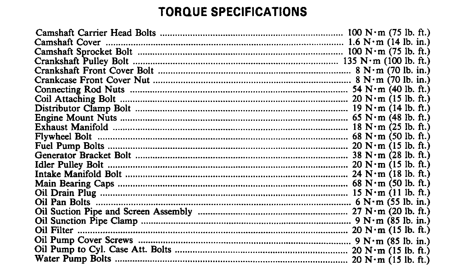 Torque Specifications: