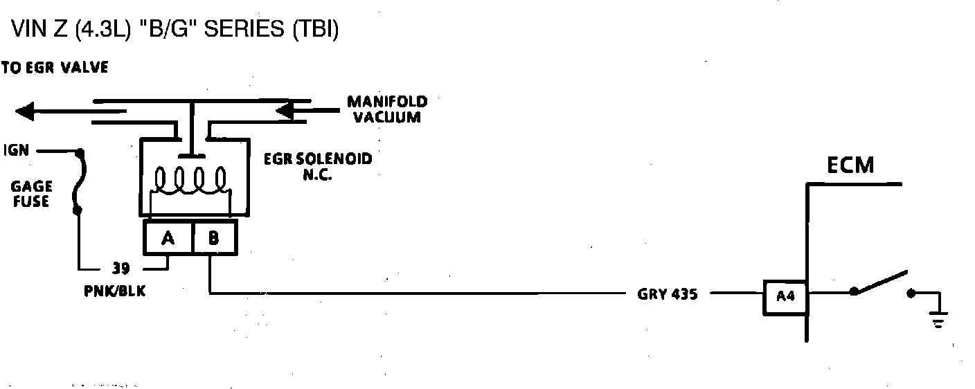 1. By grounding the diagnostic terminal, the EGR solenoid should be energized and allow vacuum to be applied to the EGR valve and the vacuum should hold.