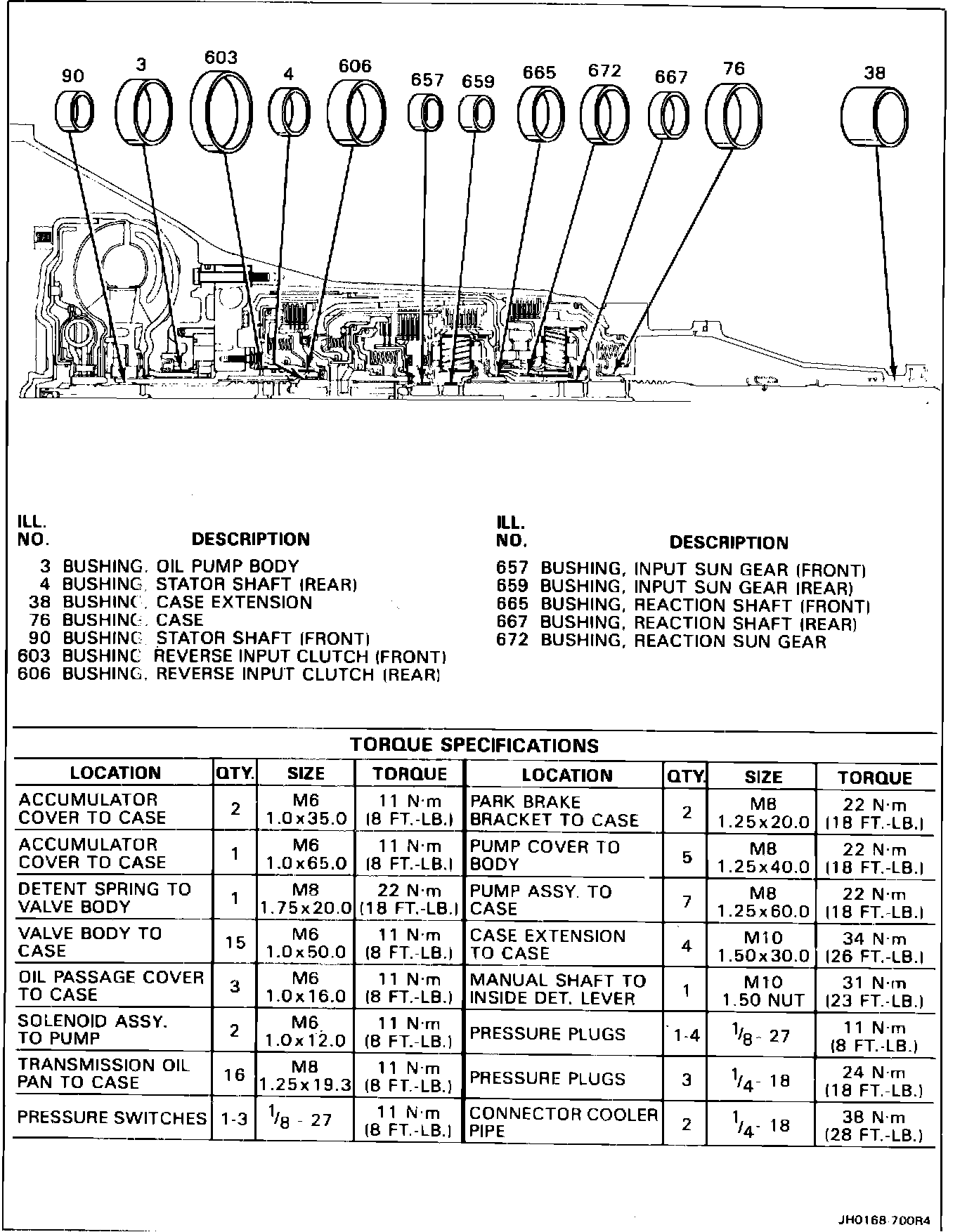 FIGURE 205 - TORQUE SPECIFICATIONS AND BUSHING LOCATIONS: