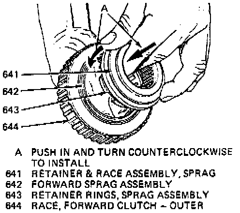 2. Remove sprag assembly wear plate, then the forward clutch retainer and race assembly.