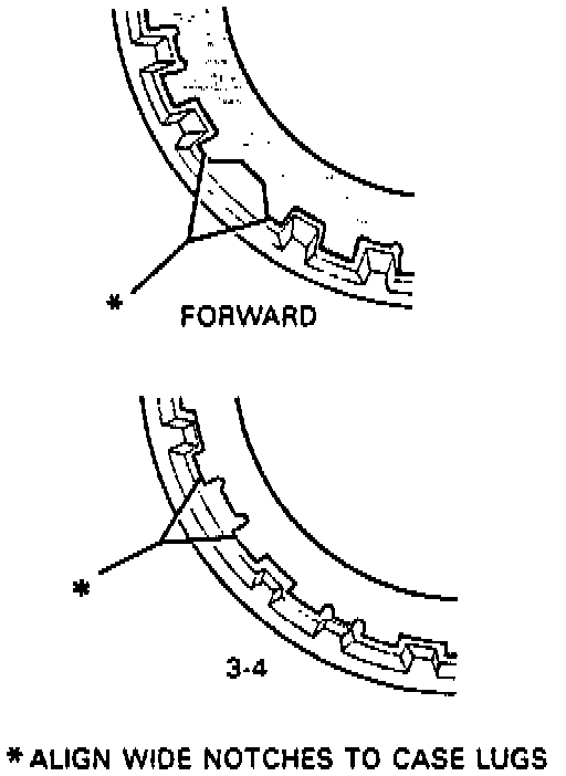 26. Install 3-4 clutch backing plate and retainer ring with chamfered side up.