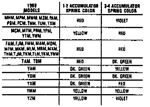 Fig. 96, 1-2 & 3-4 accumulator spring chart. 1988:
