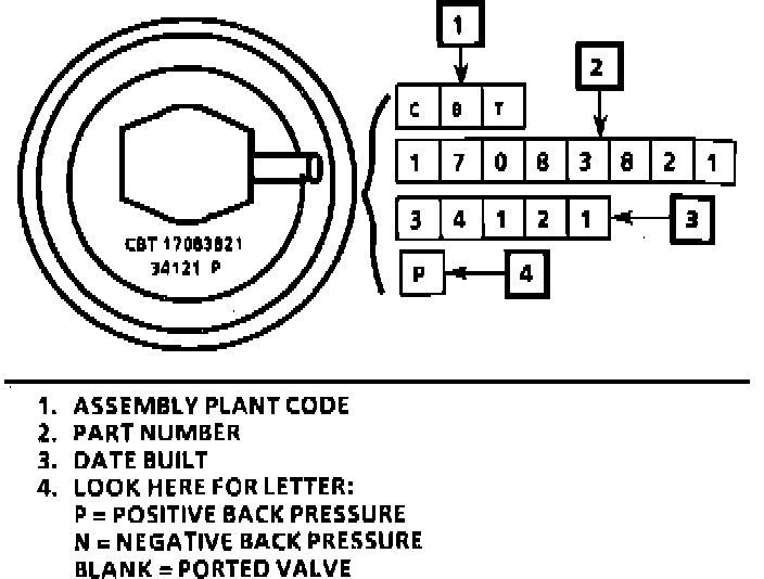 Positive backpressure EGR valves will be stamped with a "P" on the top side of the valve after the part number.