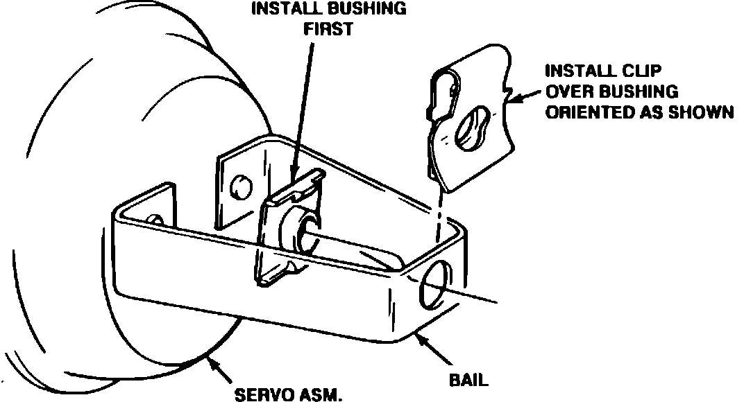 Pinch the Bushing flange with a pair of pliers and remove the Bushing from the bail. The Bushing may not be in the Bail hole as originally installed; it may be free to move on the Servo Rod Assembly. Remove the old Bushing and replace as noted below.
