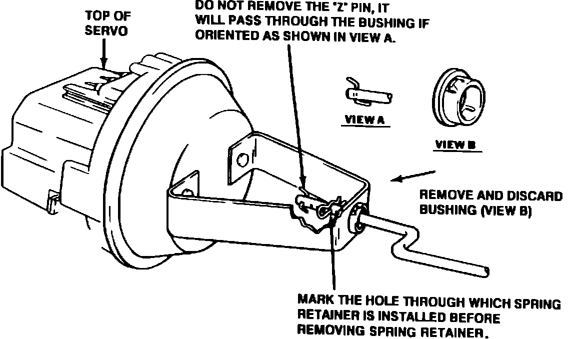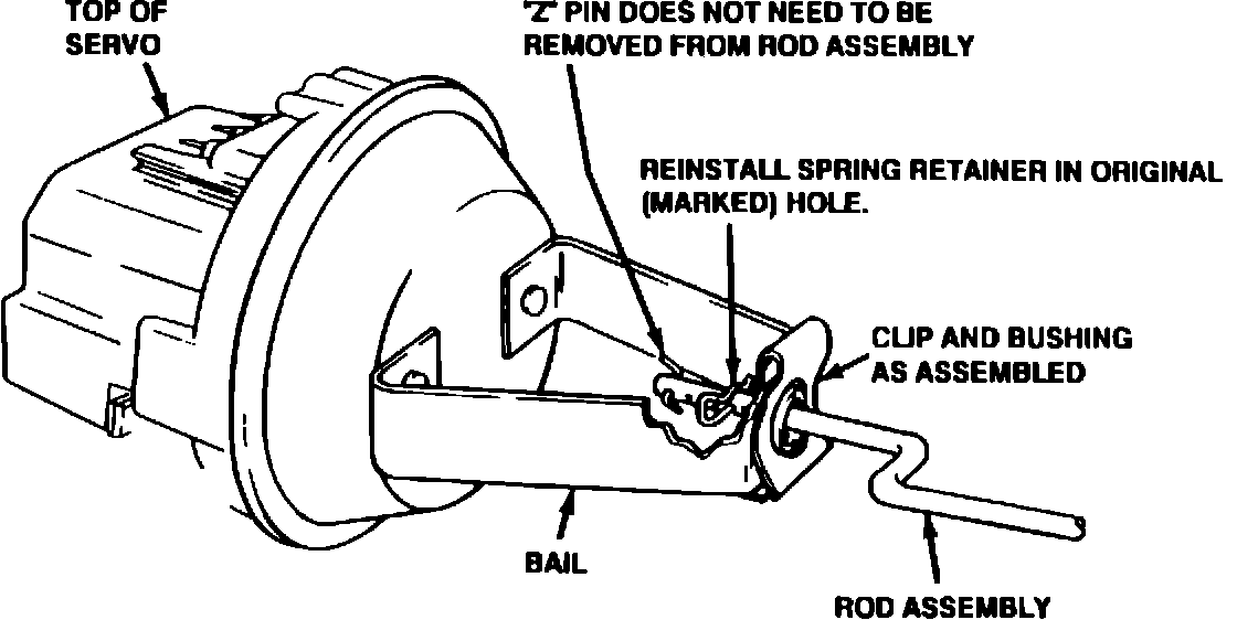 If the Servo Rod Assembly is missing the "Z" pin, install a second Spring Retainer in the end hole normally occupied by the "Z" pin.