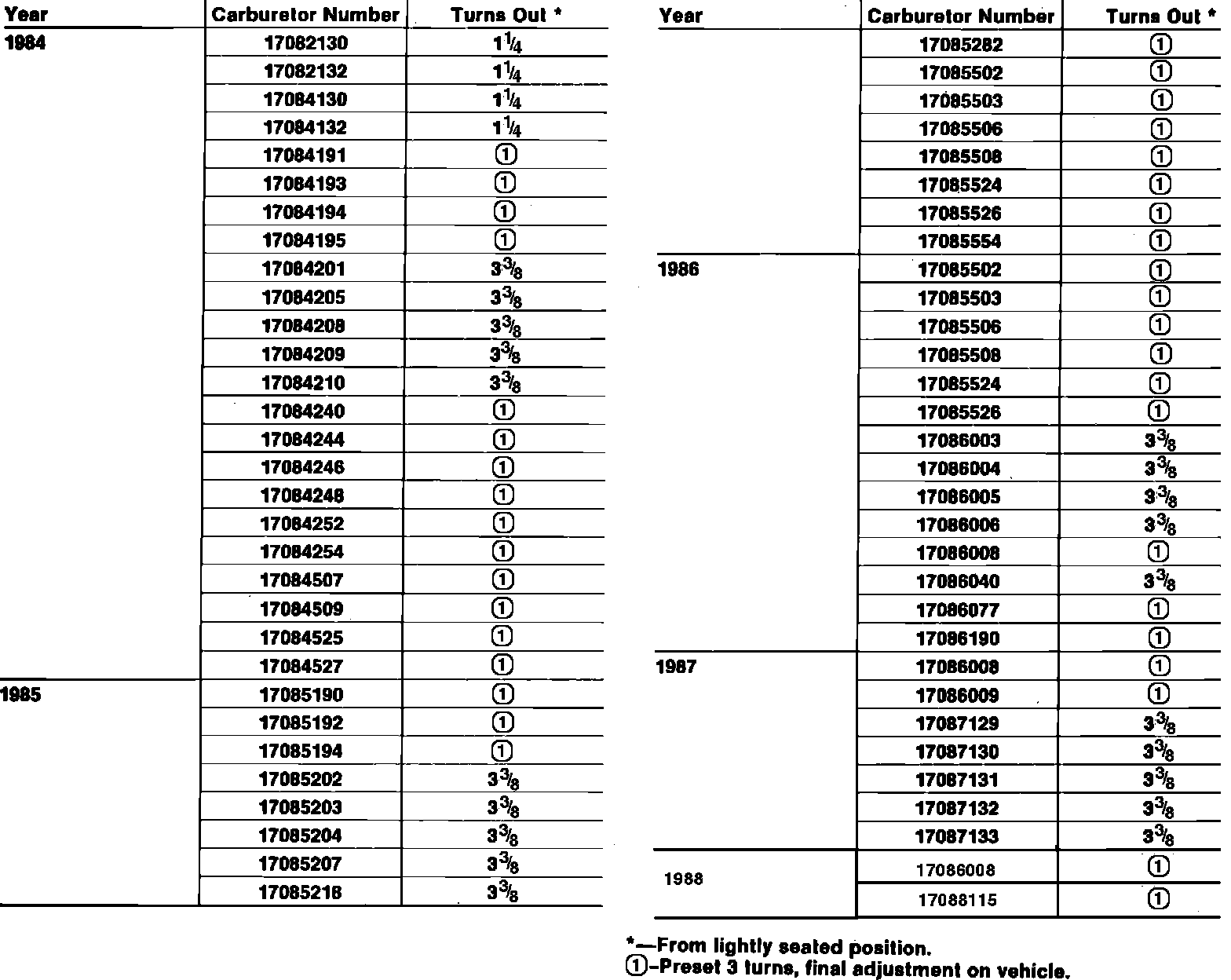 6. Turn each mixture screw in (clockwise) until lightly seated, then back screws out specified number of turns, Fig. 10.