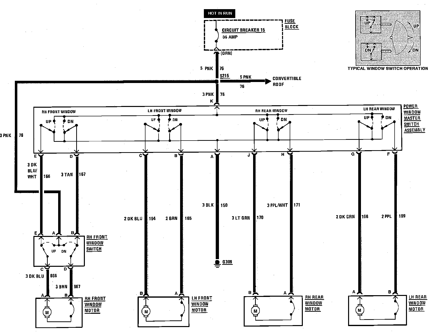 Power Windows Wiring Circuit (Convertible):
