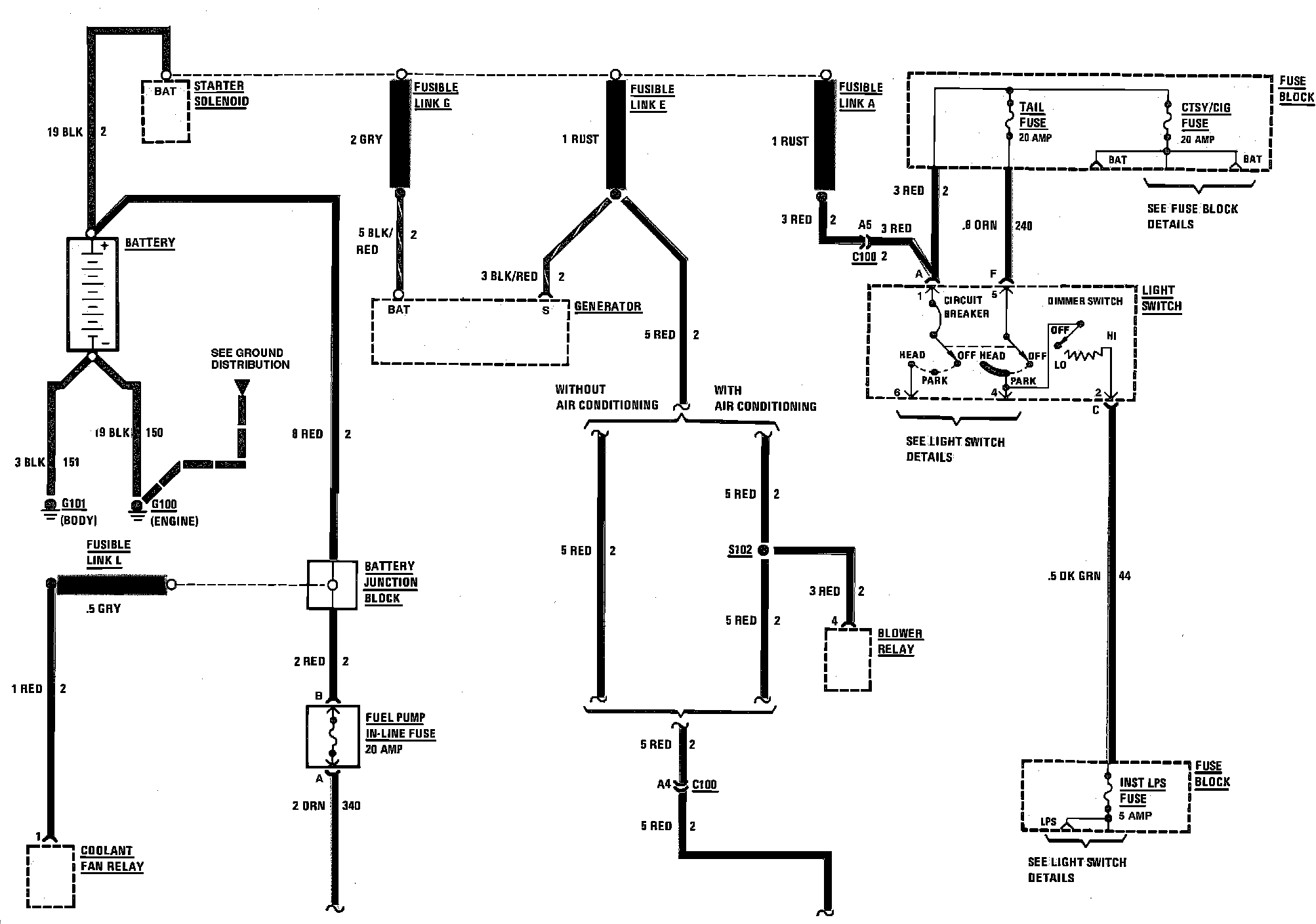 Power Distribution Wiring Circuit - Exc. RS & Z24: