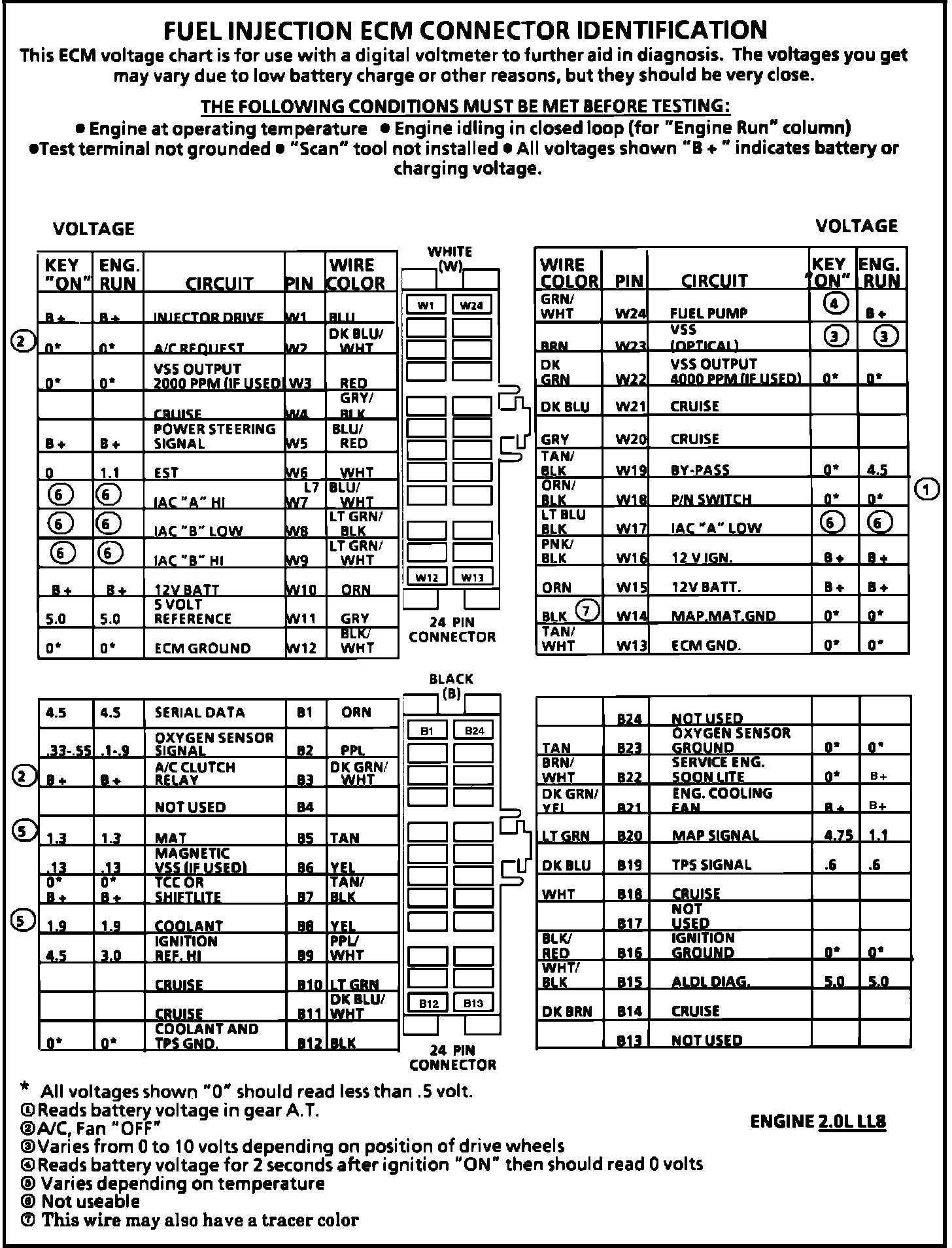 Fig. 015 ECM Connector Terminal I.D. & Volt. Specifications:
